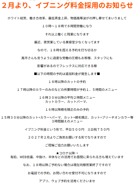 最近、夜営業している美容室少なくなってきていると思います